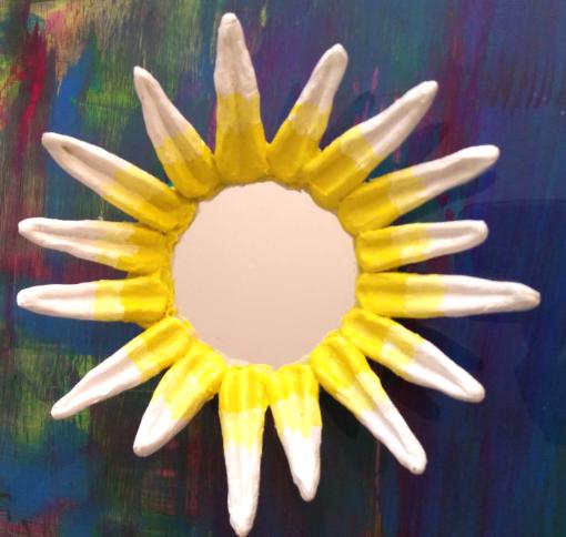 | Clay sculpture, hand crafted, around mirror. |